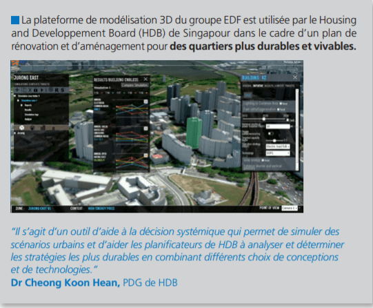 A travers sa Plateforme Smart City : Urban Decision Support d’EDF qui intègre le logiciel IGOWEB3D et les interfaces développés par IGO.