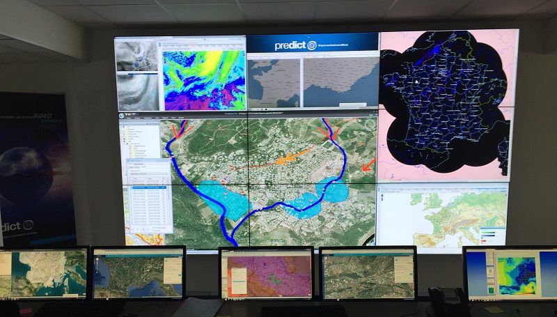 La société Predict Services (filiale d’Airbus D&S, Météo France et BRL-Ingénierie) travaille avec 22000 communes en France et dans les DOM/TOM : elle leur fournit un service de prévention du risque inondation en cas d’épisode pluvieux prévu par Météo France.