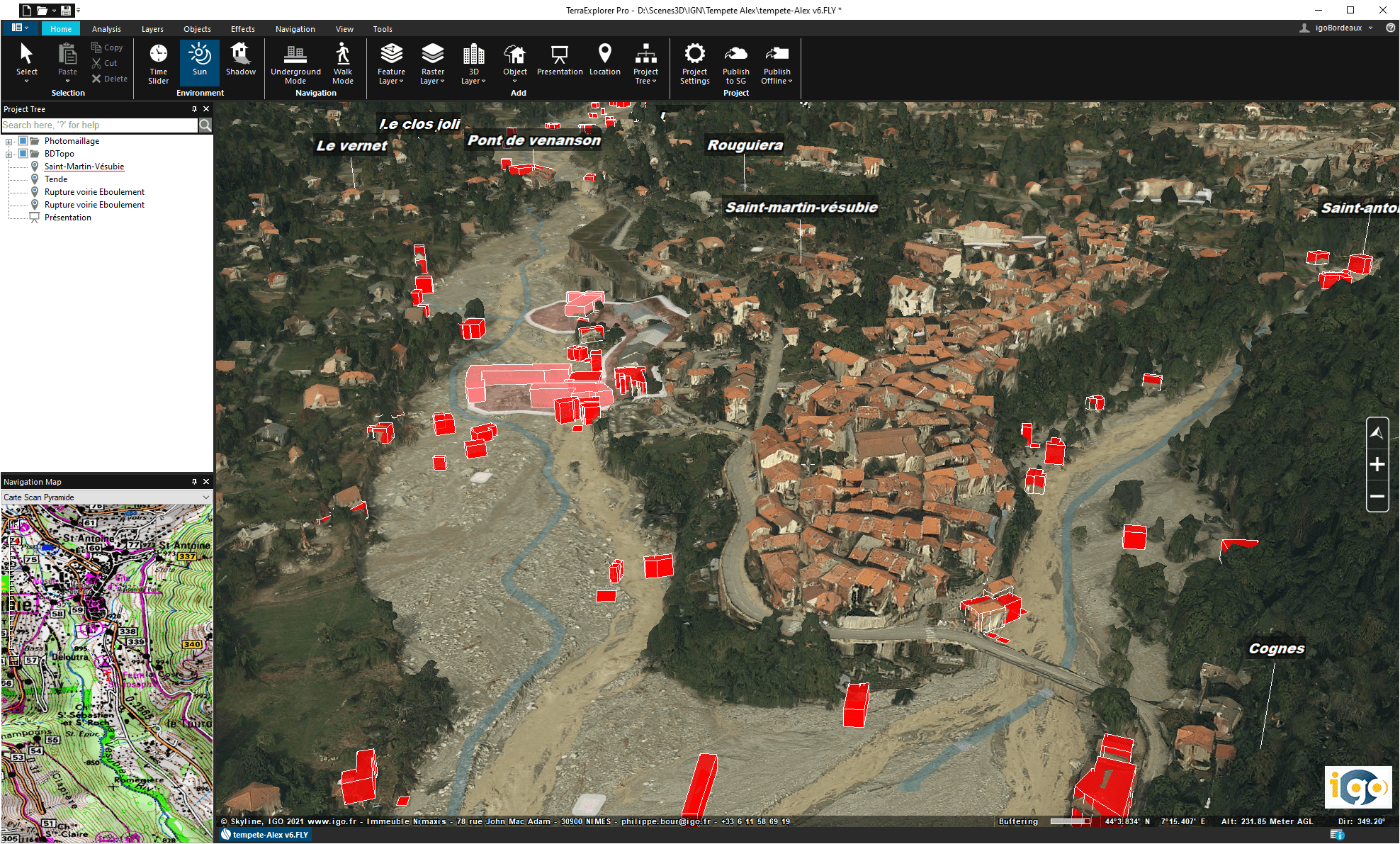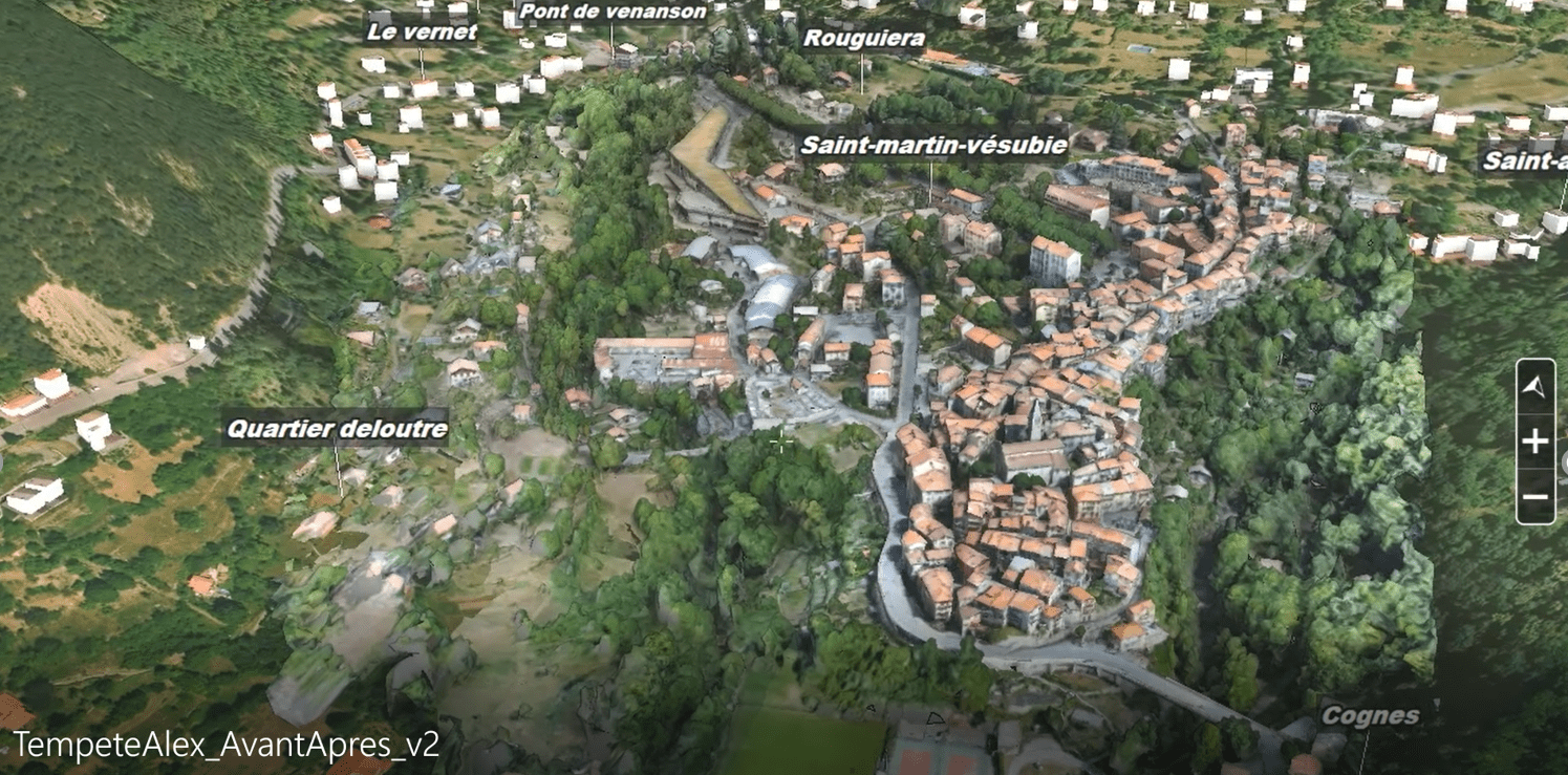 IGO a réalisé le jumeau numérique de la Vésubie à partir des images aériennes de l’IGN prise juste après la catastrophe.